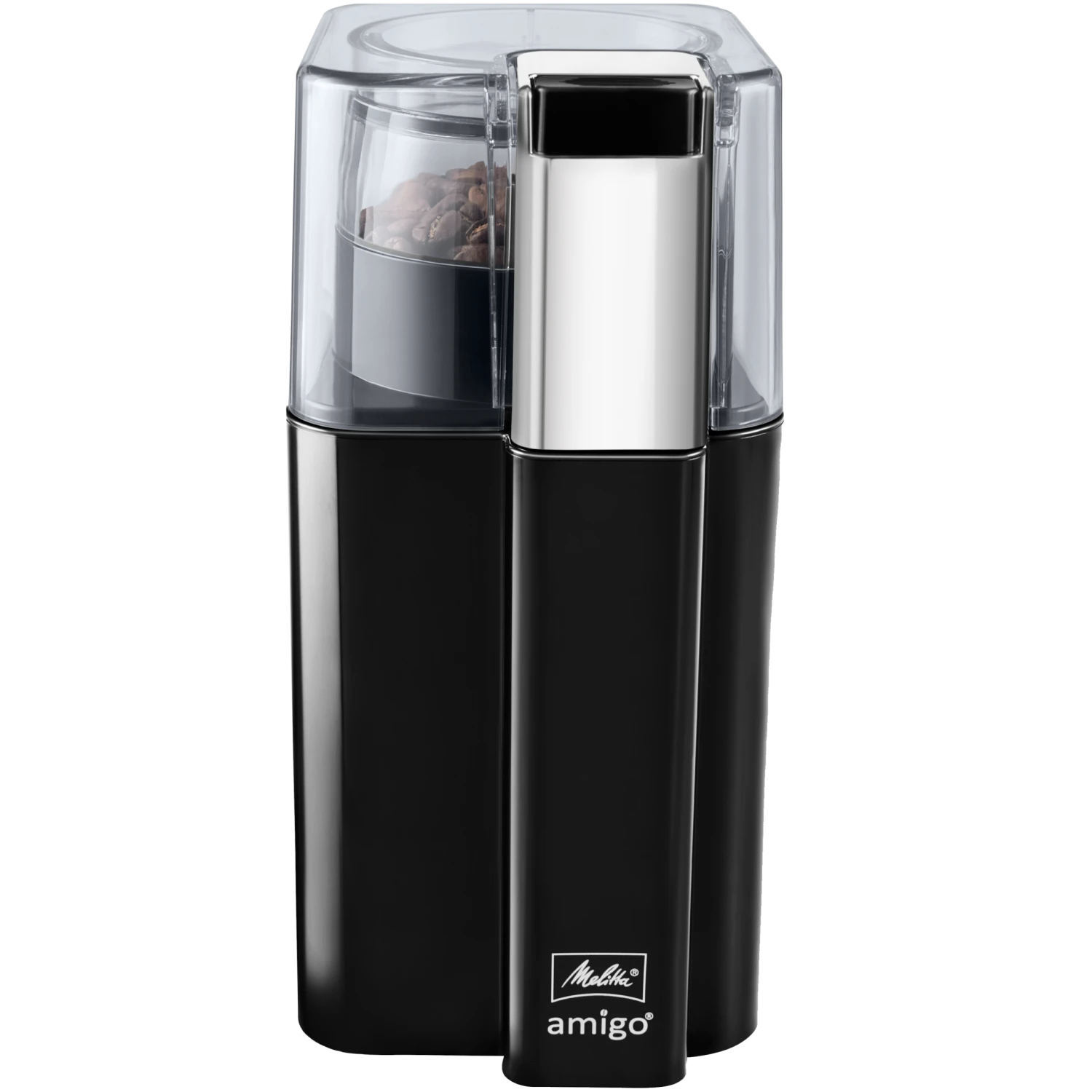 Unsere elektrische Kaffeemühle Melitta® amigo® mit einem Fassungsvermögen von 60 Gramm, zwei hochwertigen Schlagmessern aus Edelstahl und einer einfachen Bedienung garantiert frischen Genuss in jeder Tasse. Der Mahlvorgang wird durch die Dauer des Tastendrucks gesteuert, wodurch du den Mahlgrad individuell für verschiedene Zubereitungsarten bestimmen kannst. Frisch gemahlen – für deinen aromatischen Kaffeegenussmoment.