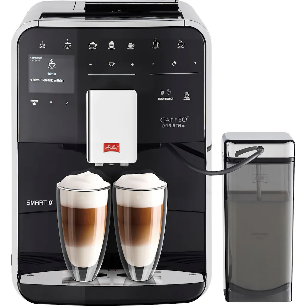 | Weitere Vorteile | • Das hochwertige Stahl-Kegelmahlwerk dieses Kaffeevollautomaten mahlt die Kaffeebohnen besonders leise. Damit wird die Zubereitung des Lieblings-Heißgetränks schon zur Auszeit. Die Auszeichnung mit dem Quiet Mark bestätigt diese Stärke der Barista TS Smart®.• Aber auch im Bezug auf den Bedienkomfort kommen Besitzer der Barista TS Smart nicht zu kurz. Die One Touch Funktion ermöglicht das schnelle Heißgetränk auf Knopfdruck. In Kombination mit der 2-Tassen Zubereitung, dem Double Cup Mode, einfach unschlagbar.• Bequemer geht’s nicht: Dank der Melitta® Connect App lässt sich das Gerät auch per Smartphone bedienen. So kann beispielsweise vom Sofa aus das favorisierte Heißgetränk zubereitet werden. Auch zahlreiche Einstellungen können per App vorgenommen werden.• Das hochauflösende TFT-Farbdisplay und die Touch & Slide Bedienfläche runden die intuitive und kinderleichte Bedienung der Barista TS Smart® optimal ab.• All-in-One-Auslauf: Jeweils zwei hintereinander liegende Düsen für Kaffee und Milch sowie eine Düse für Heißwasser• Mehr Kaffee-Vielfalt geht nicht: Die Barista TS Smart® ist in der Lage ganze 21 verschiedene Kaffeevariationen nach dem Italian Preparation Process zuzubereiten. Hierbei macht die Reihenfolge der einzelnen Komponenten den entscheidenden Unterschied für original italienischen Kaffeegenuss. Mit Milchschaum oder ohne? Von Café Creme bis Espresso Macchiato ist alles dabei. |