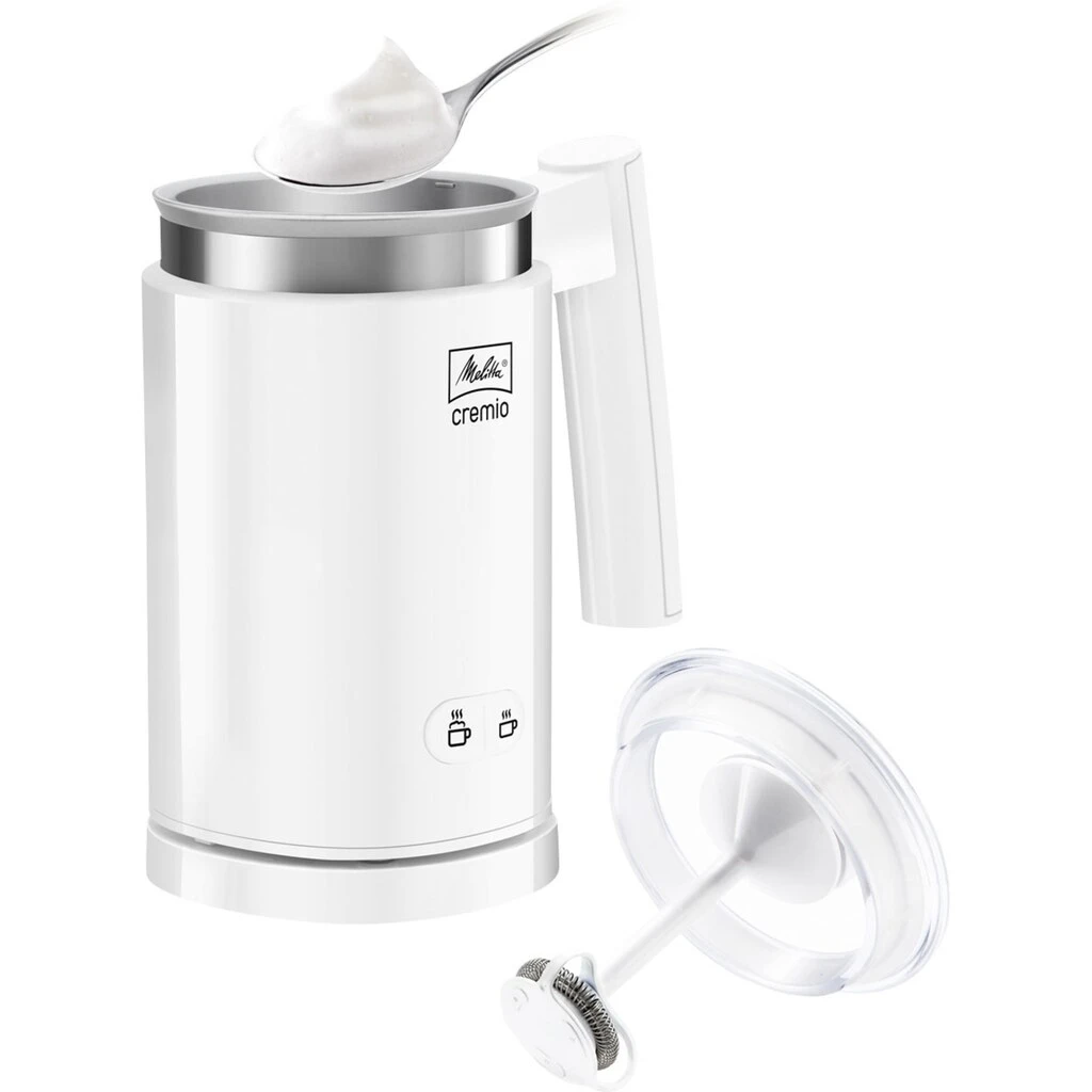 | Top-Features | Der Melitta® Cremio® zaubert auf Knopfdruck lockeren Milchschaum. Die Füllmenge für warmen oder kaltem Milchschaum liegt bei 100-150ml. Der Cremio zaubert auch aus pflanzlicher Milch perfekten Milchschaum. Die Füllmenge für warme Milch z.B. zur Zubereitung eines Kakaos liegt bei 100-250ml |